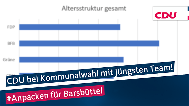 "Es reicht nicht, junge Leute nur für Marketingzwecke zu nutzen - man muss sie auch tatsächlich fördern und in Verantwortung bringen. Unser Spitzentrio ist durchschnittlich 34 Jahre alt und damit mehr als 20 Jahre jünger als die Spitzenkandidaten der anderen Parteien und Wählergemeinschaften", sagt Henri Schmidt, Spitzenkandidat der CDU in Barsbüttel.