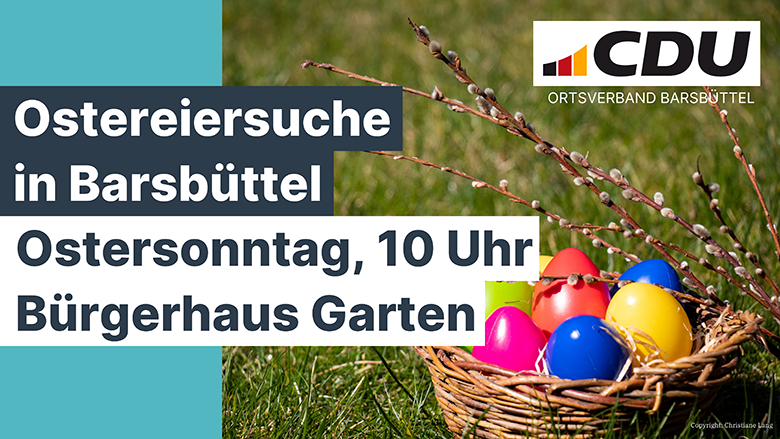 Der CDU-Ortsverband Barsbüttel lädt alle Kinder bis zum Alter von 8 Jahren zum traditionellen Ostereiersammeln ein.