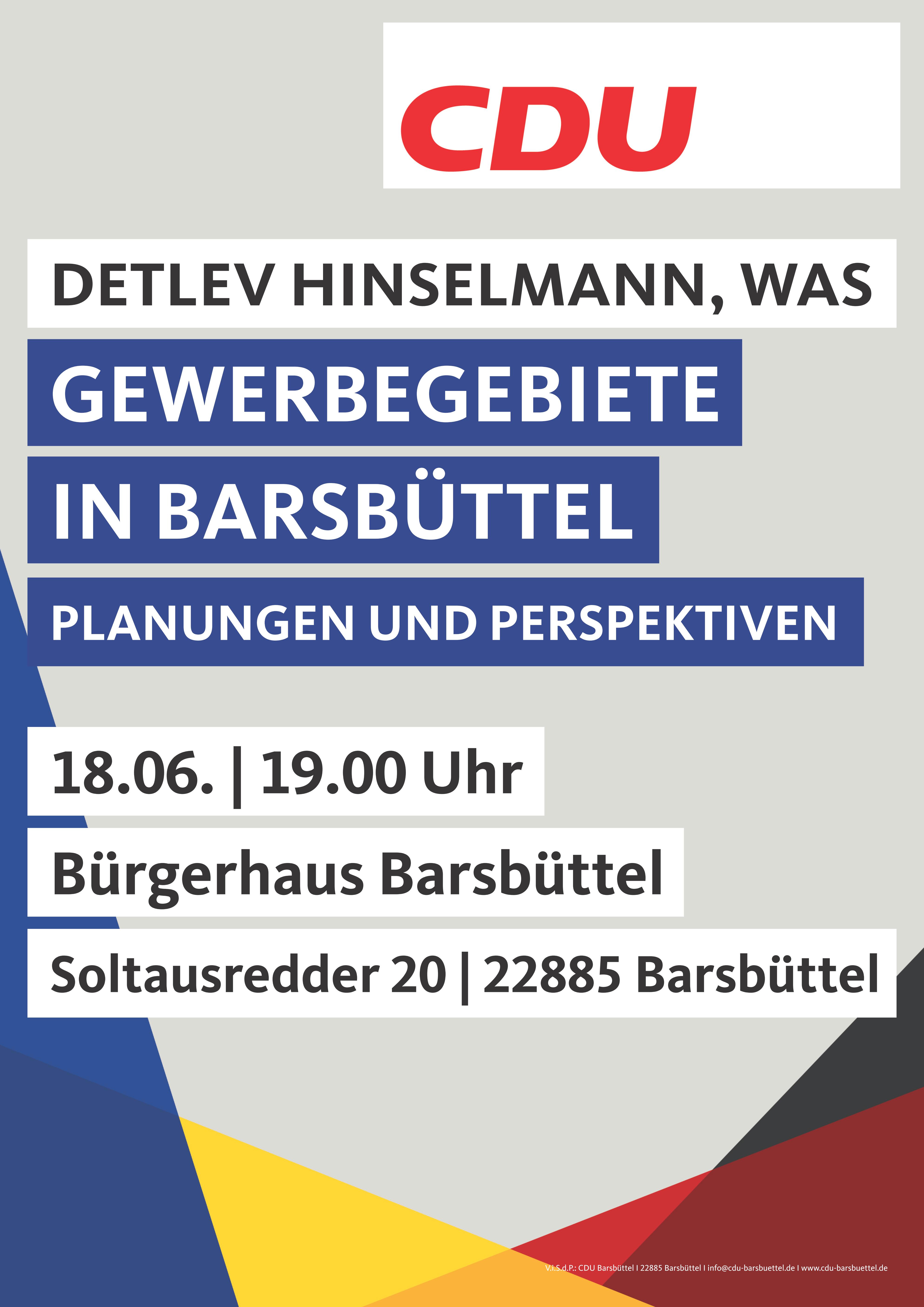 Diese und viele weitere Fragen möchte die CDU Barsbüttel gemeinsam mit Detlev Hinselmann, dem Geschäftsführer der Wirtschafts- und Aufbaugesellschaft Stormarn diskutieren. Die Moderation übernimmt Henri Schmidt, Fraktionsvorsitzender in der Gemeindevertretung Barsbüttel.
